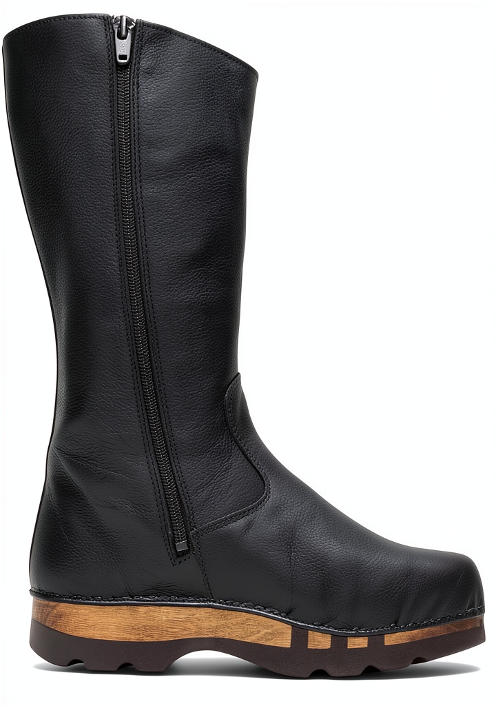 The sole is made from sustainable willow wood, offering flexibility and environmental benefits.